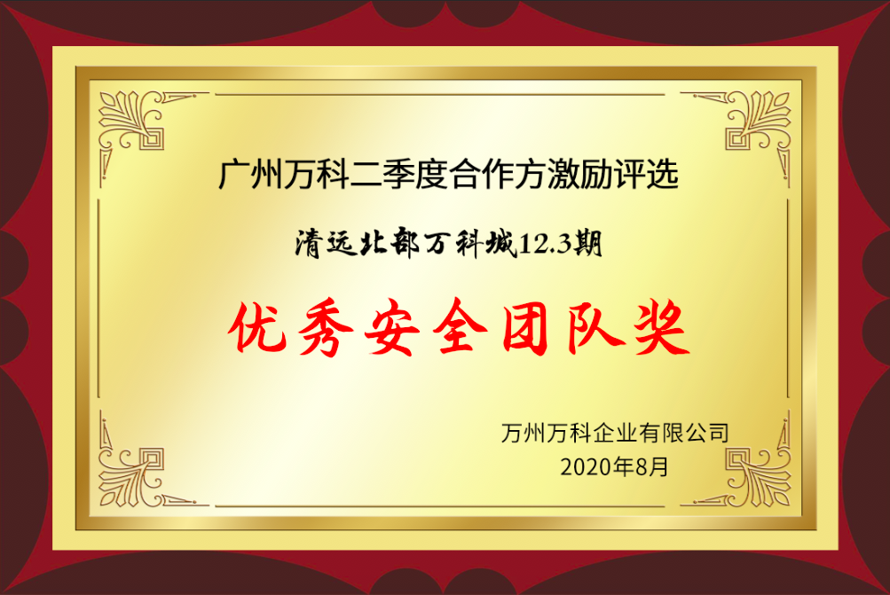 • 2020年荣获广州万科优秀安全团队奖(3期)